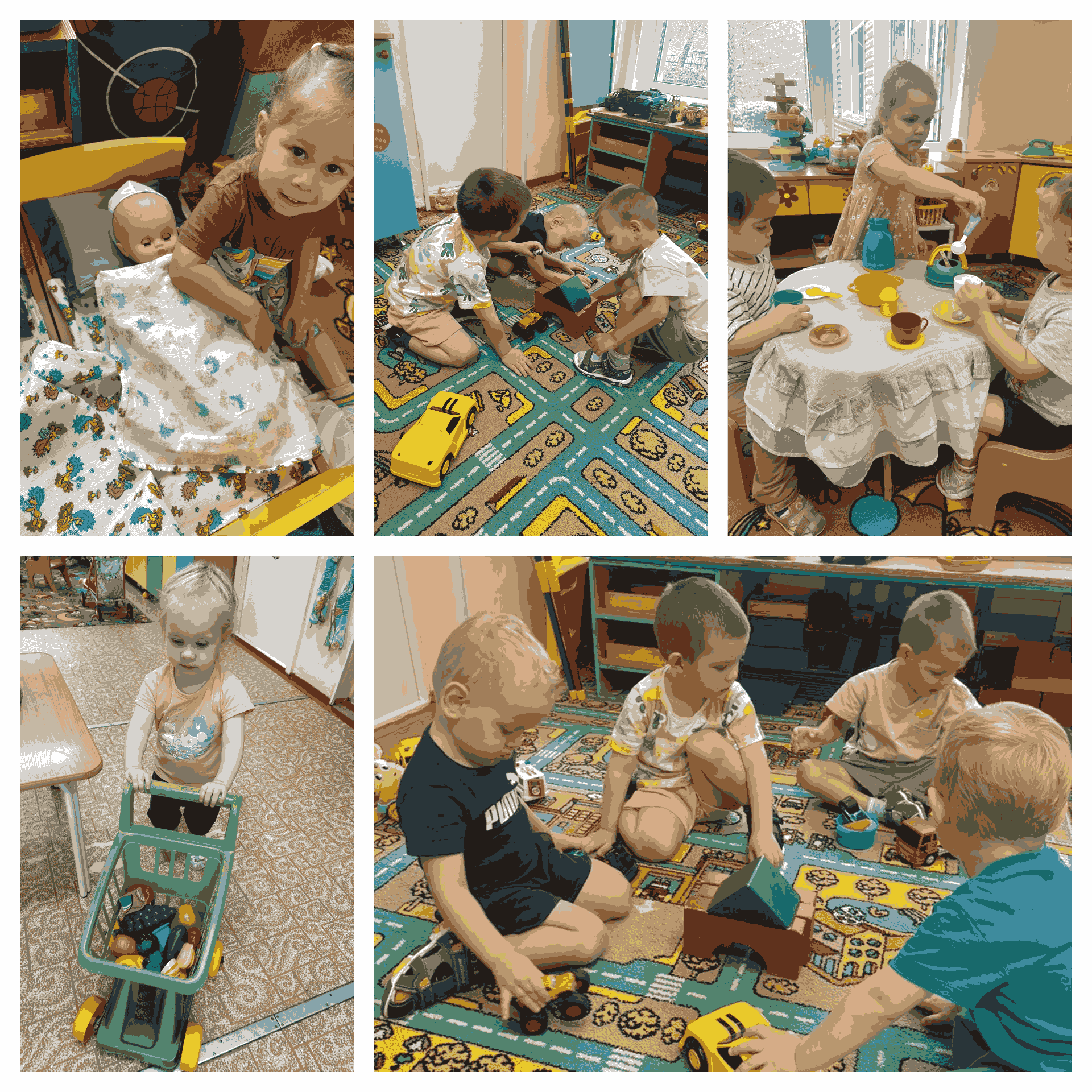 Наши дети каждый день примеряют на себя разные роли: и кашу сварят, и чаем напоят, и машину в гараж загонят, и в магазин за продуктами сходят. На все руки мастера!